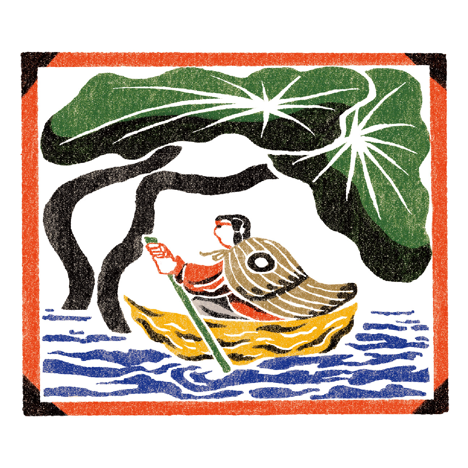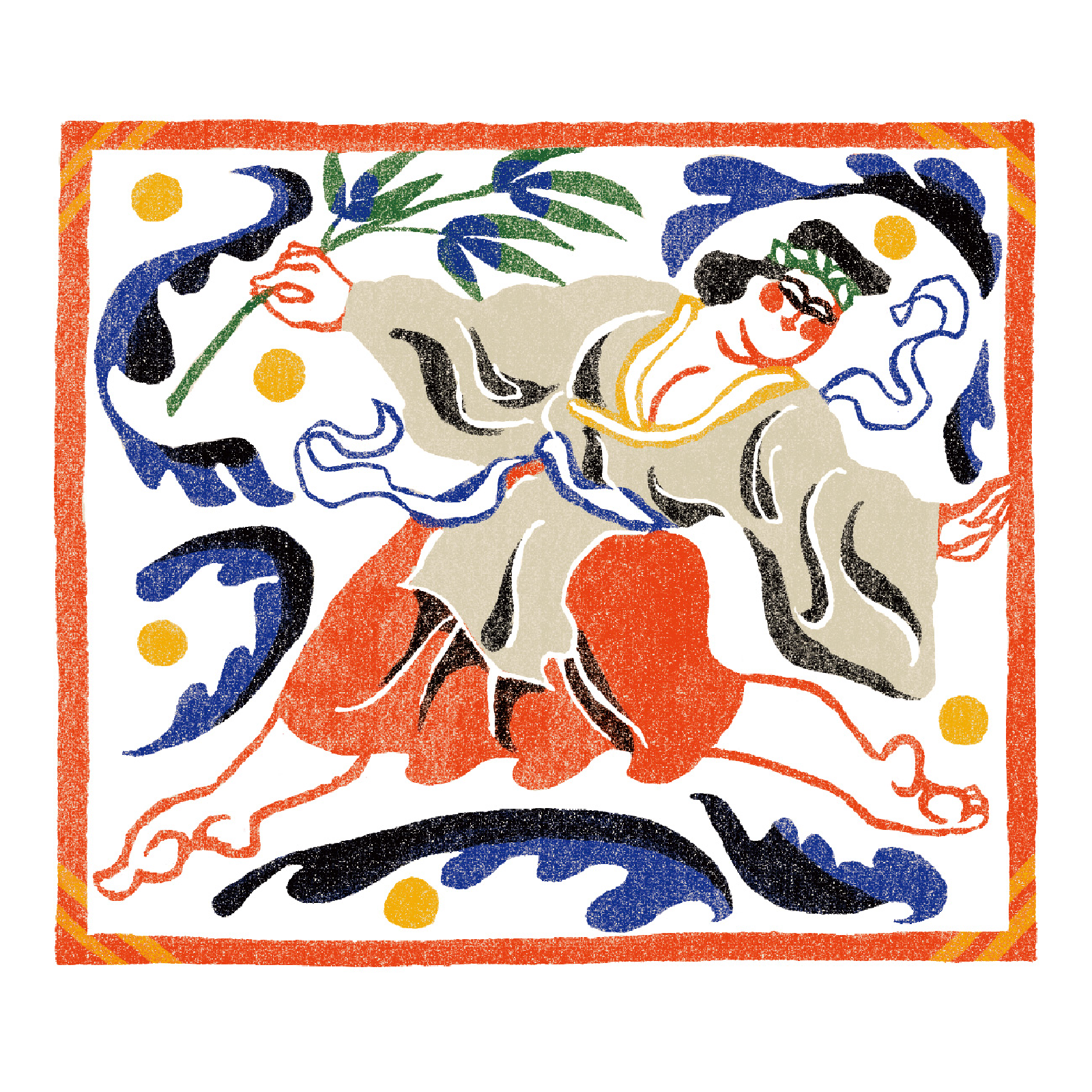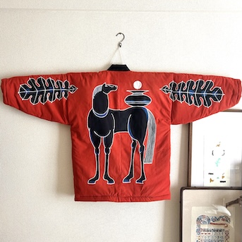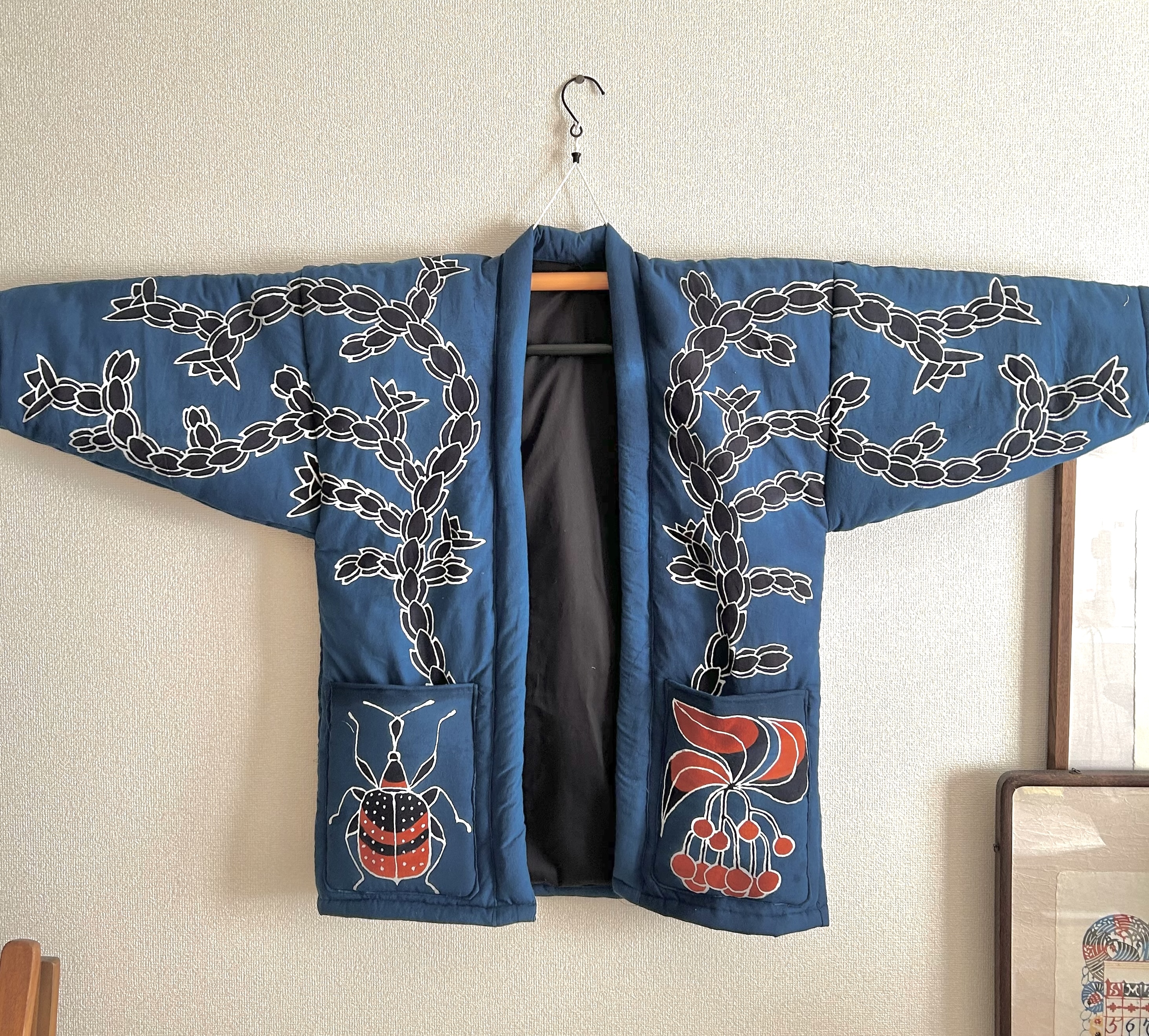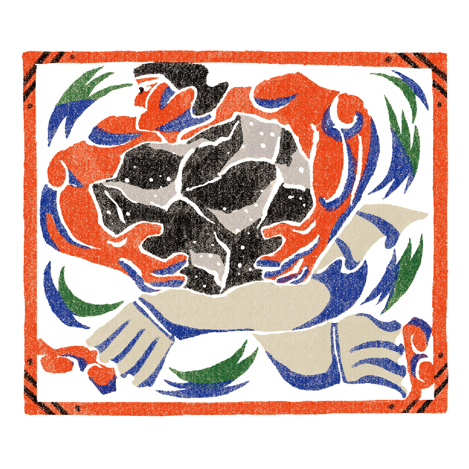 デジタルでの作成ですが、テクスチャなどを使って型染の風合いを出しています。