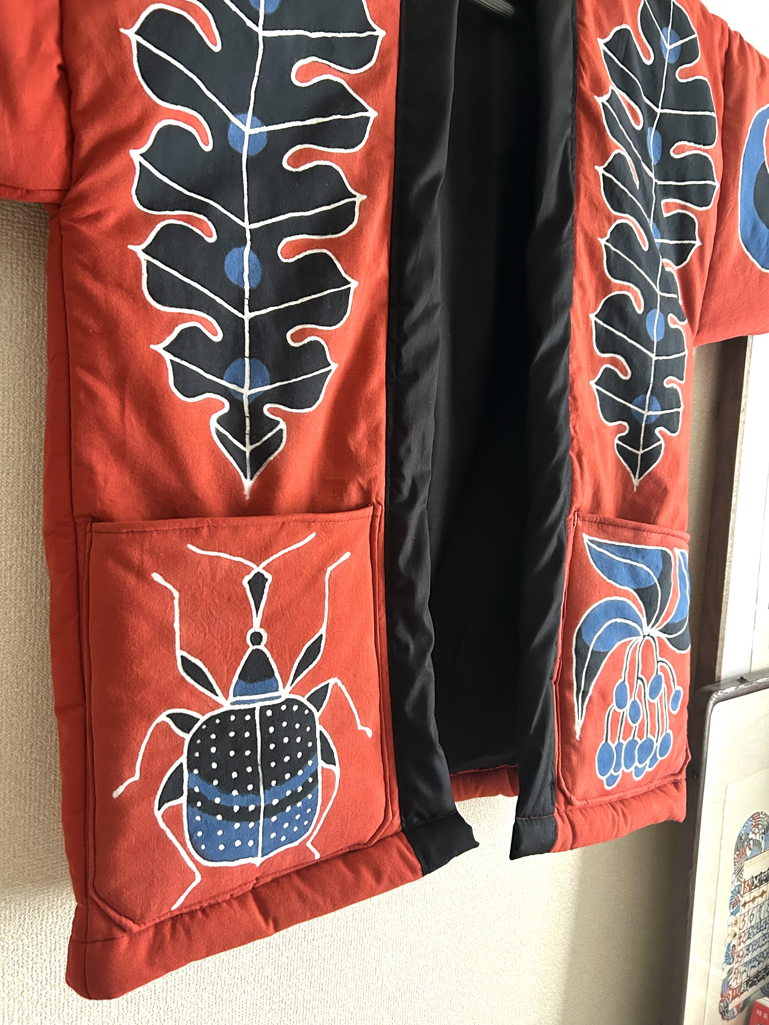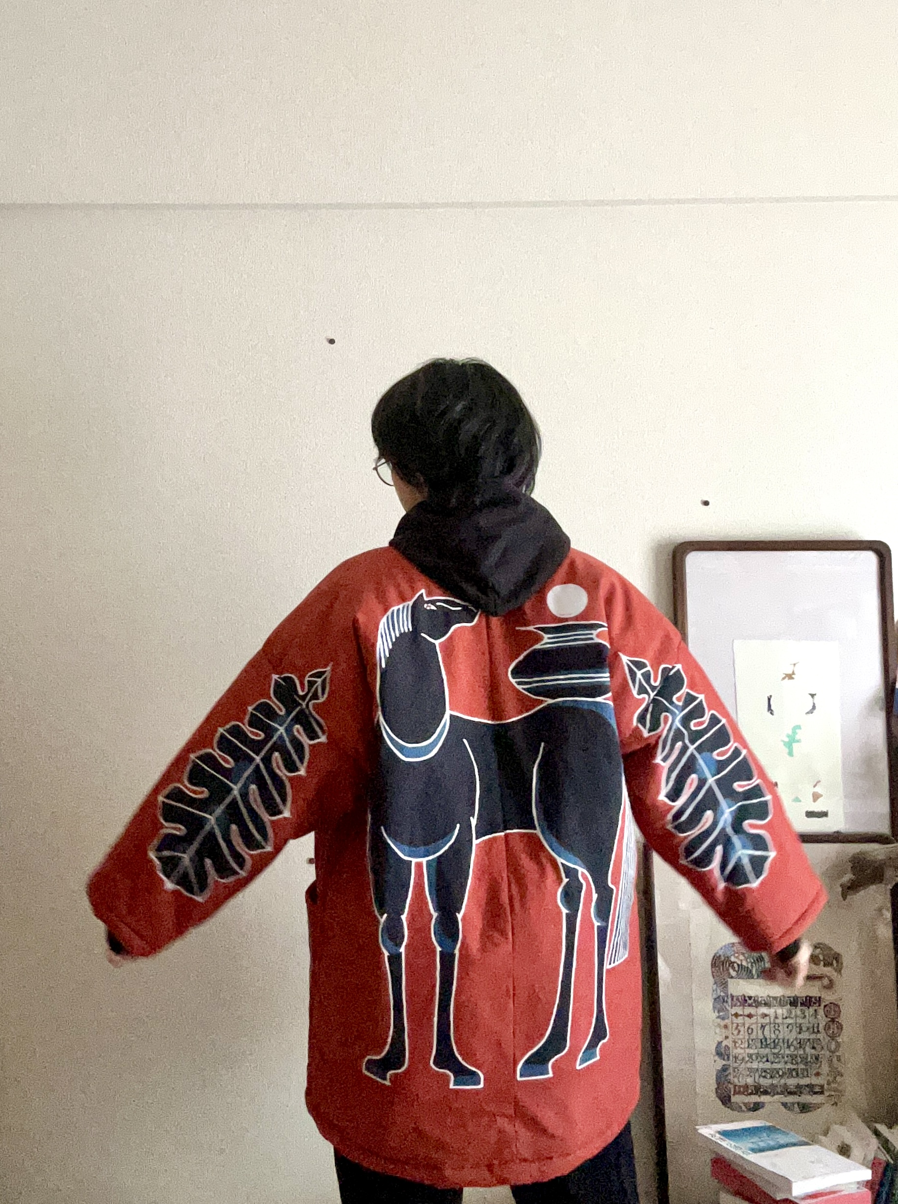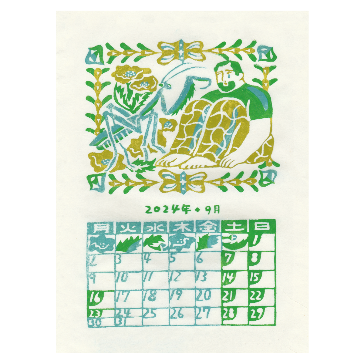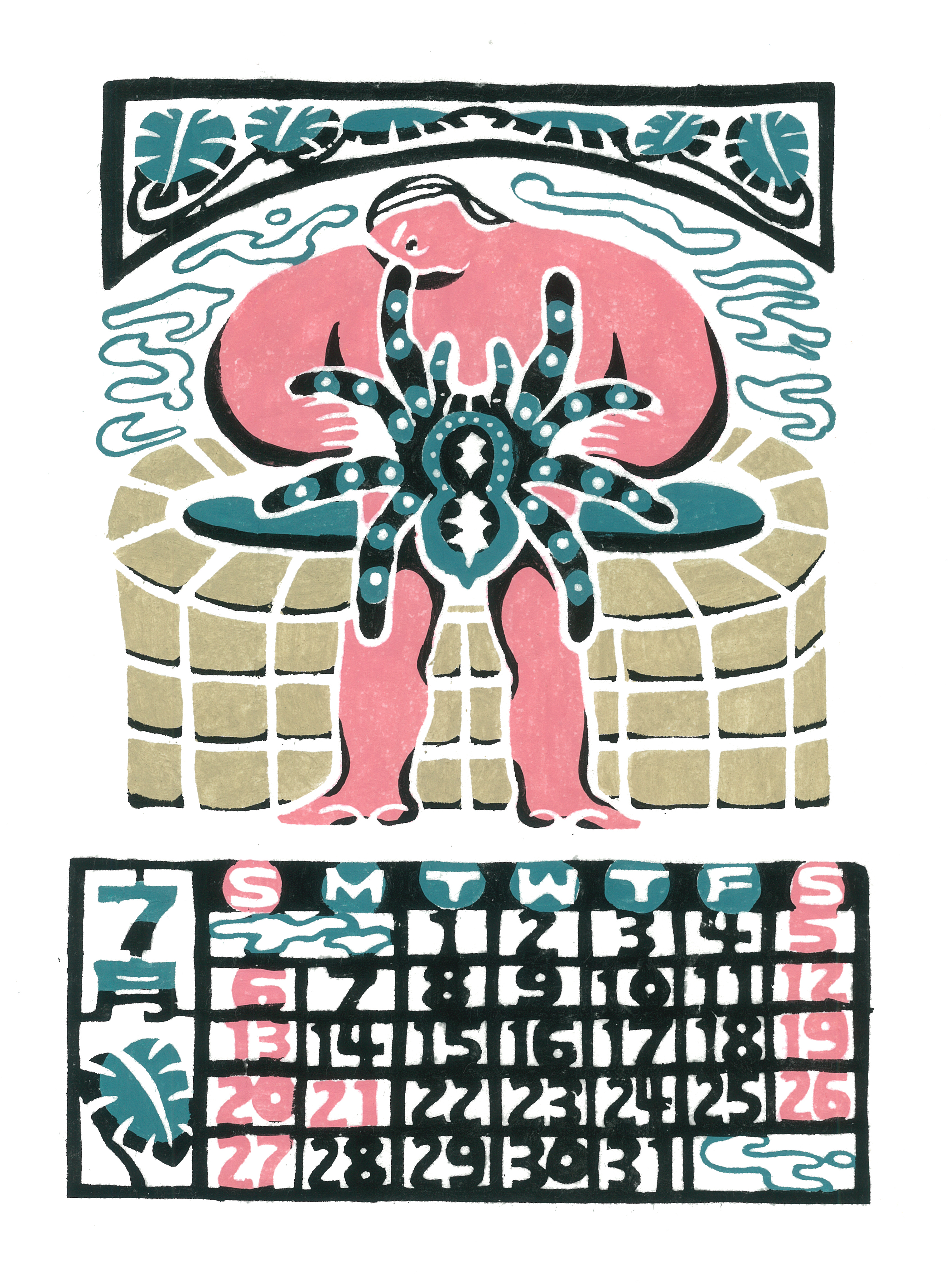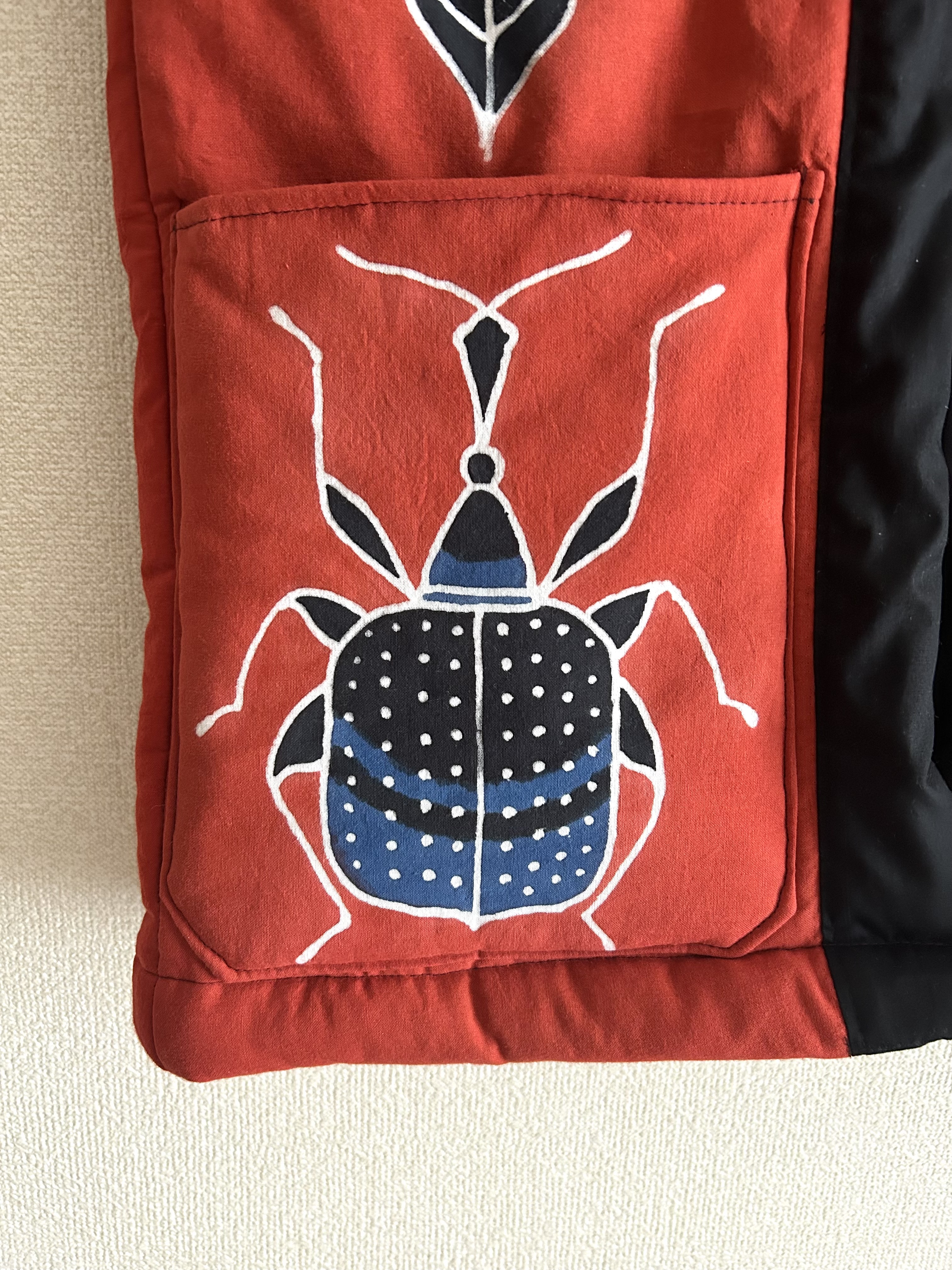 デジタルでの作成ですが、テクスチャなどを使って型染の風合いを出しています。