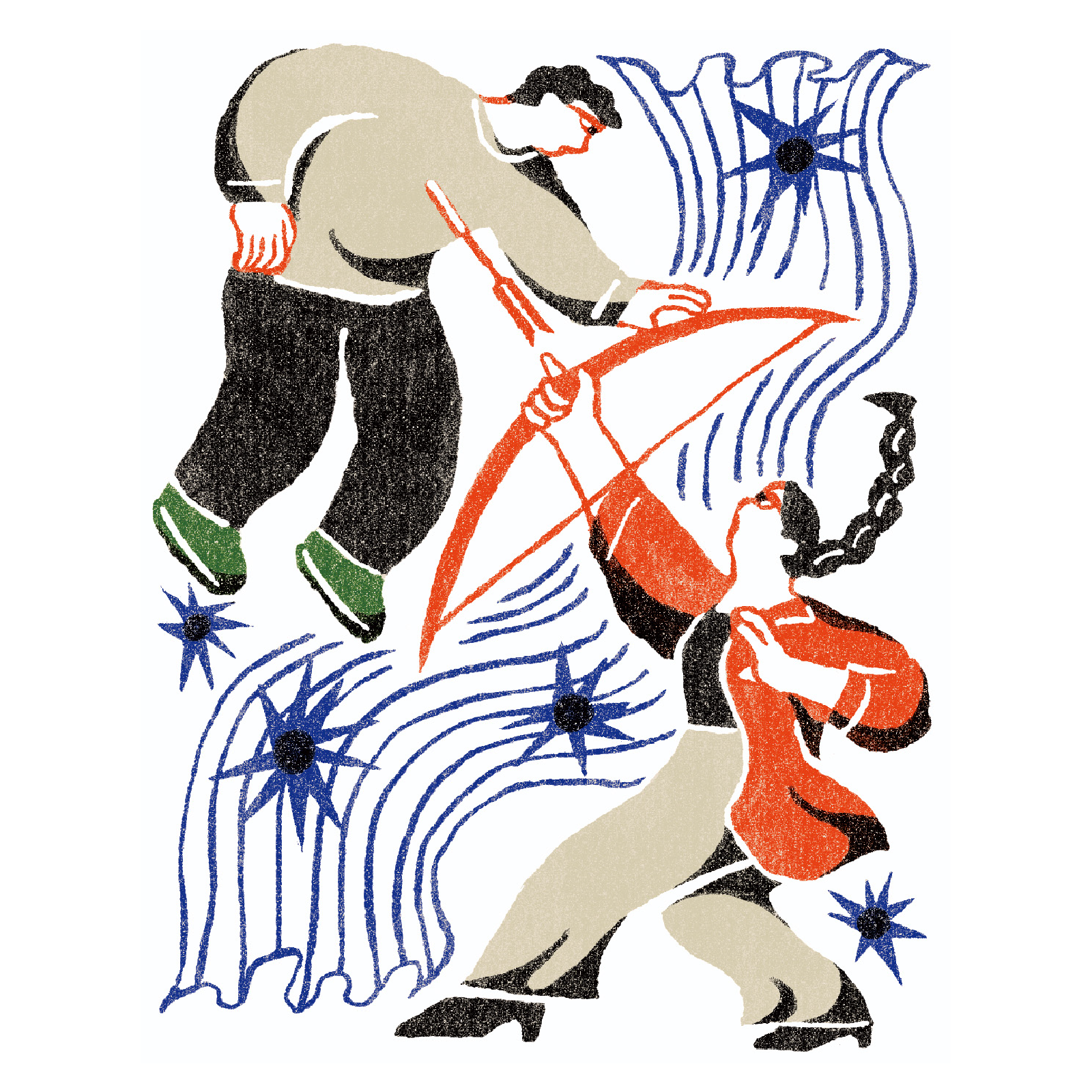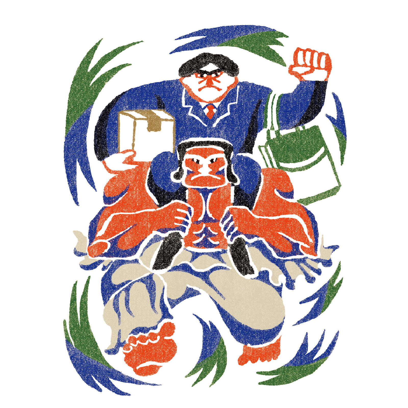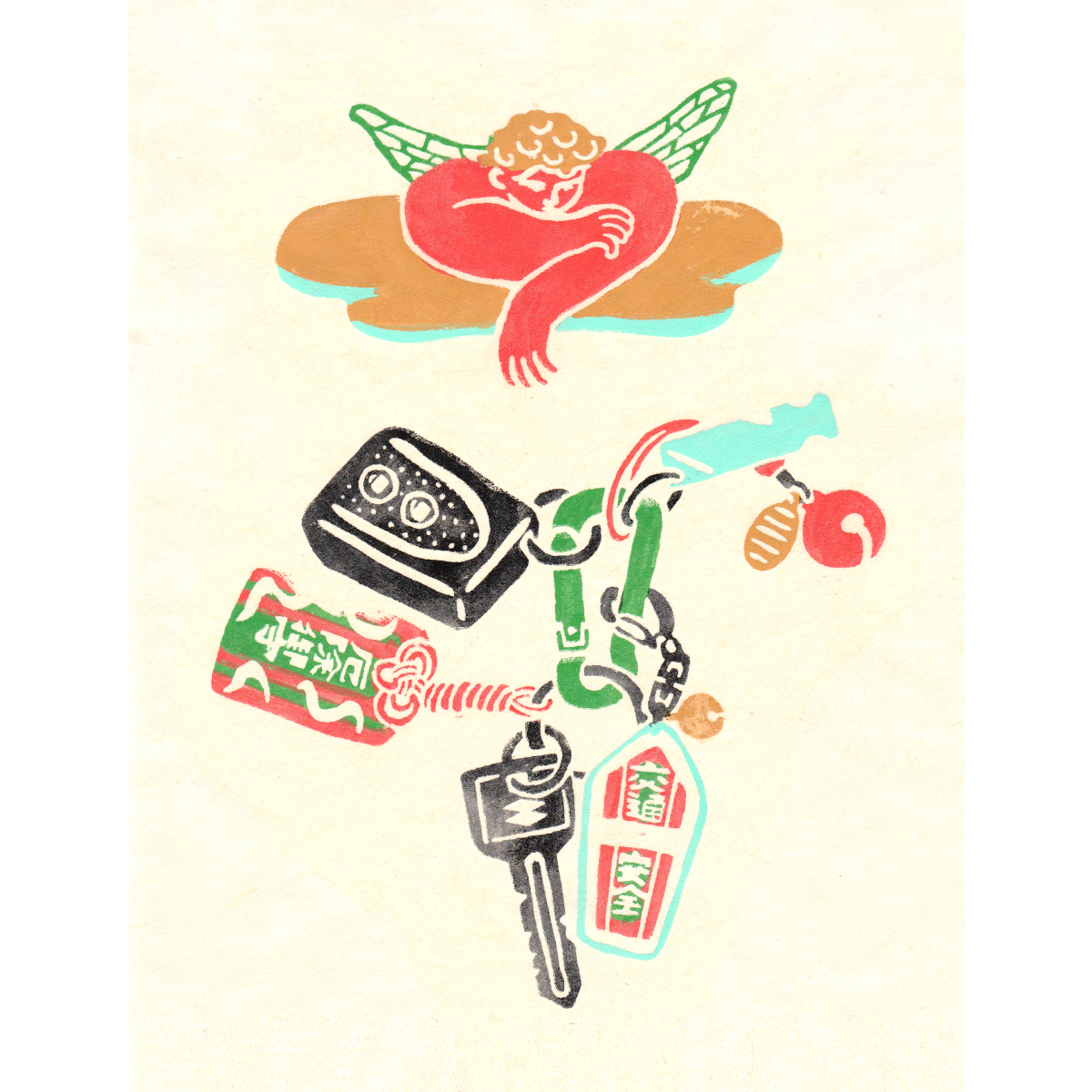 「ある程度の抽象度で」とのご依頼だったので、なるべく詳細は描き込まず、色と形と線のバランスで構成するようにしました。