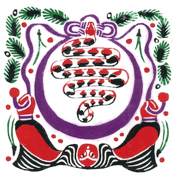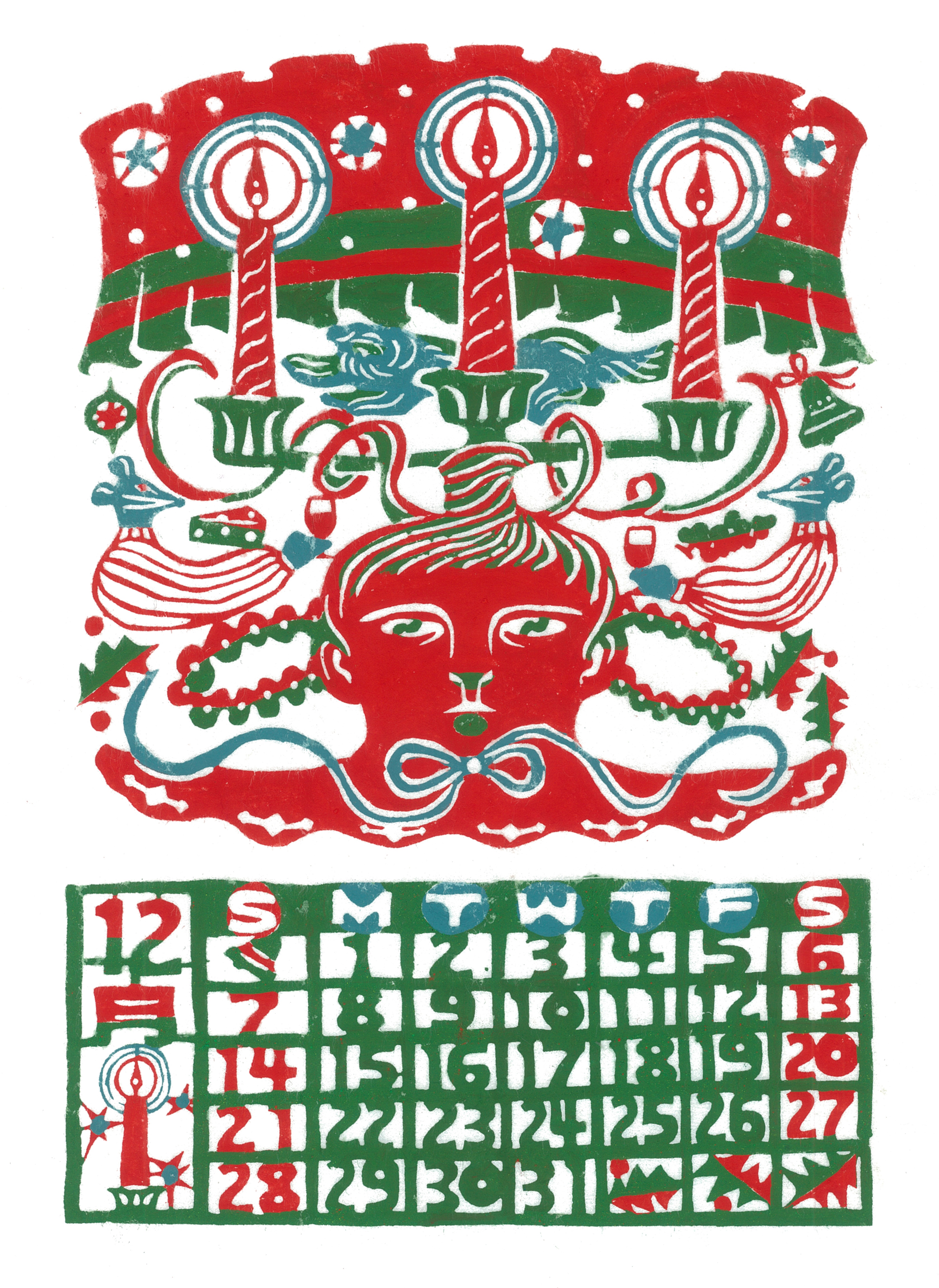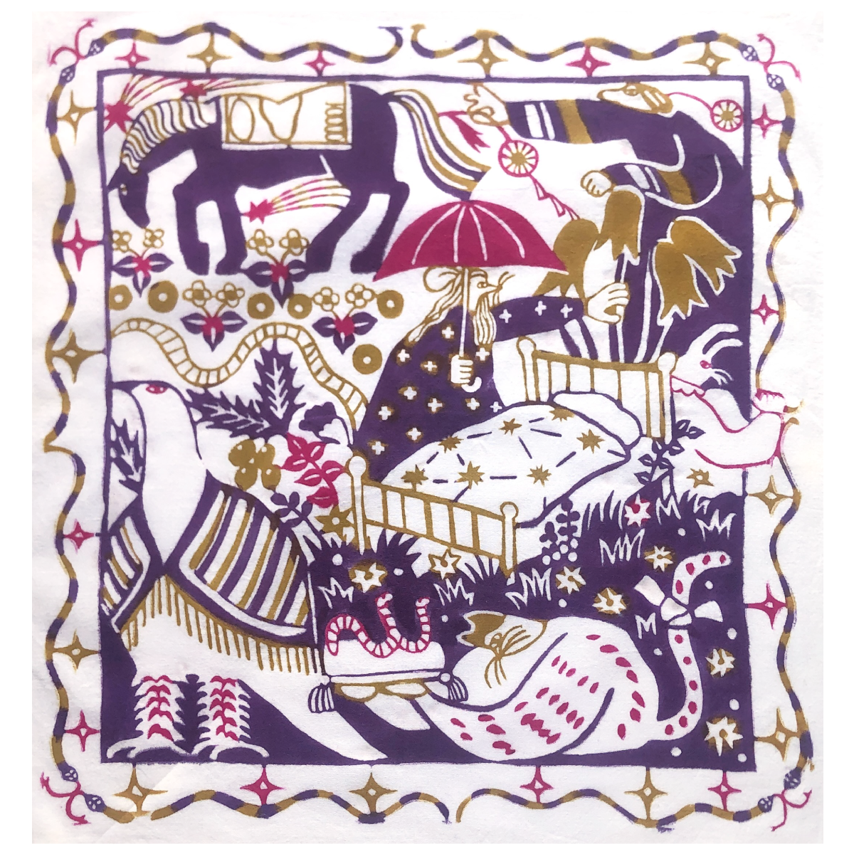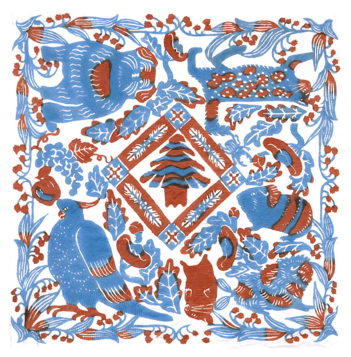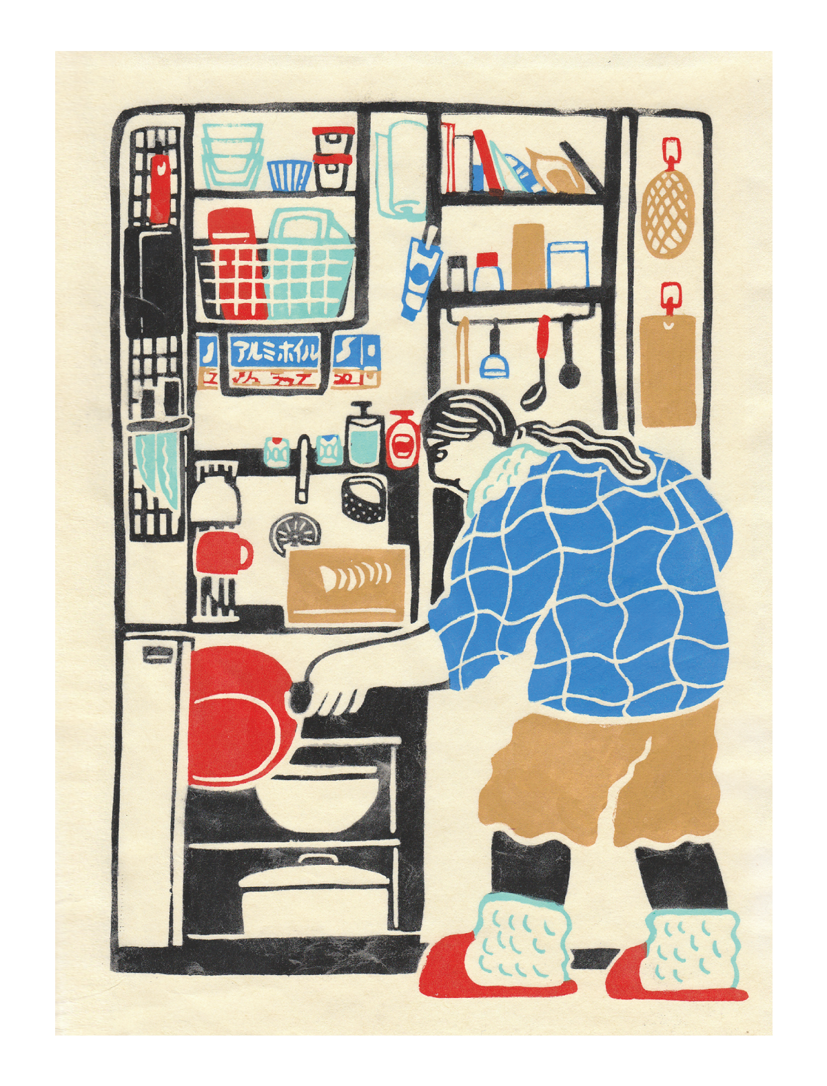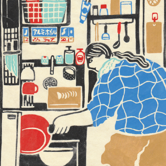 「食卓」型染め・和紙・顔料