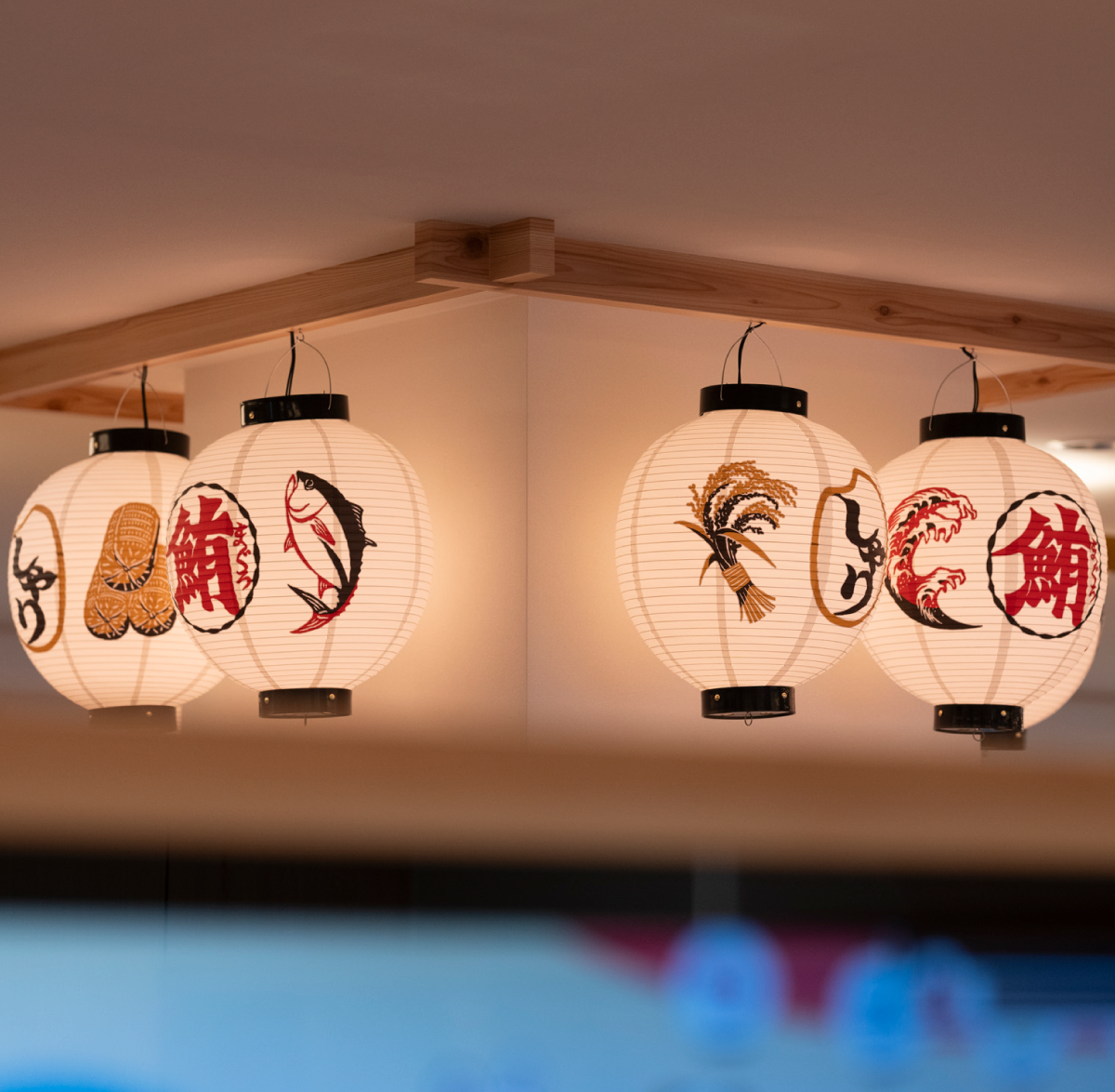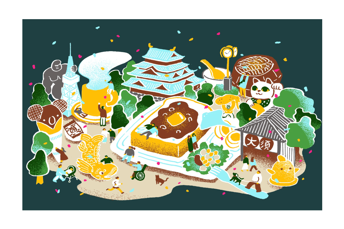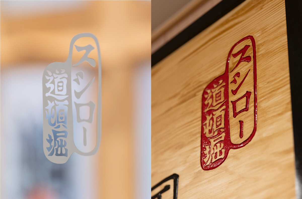 スシロー道頓堀店の提灯用イラストと落款風の店名イラストを作成しました。