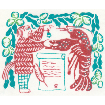 カバーに採用いただき、タイトル文字もイラストに合わせて型染で作成しています。