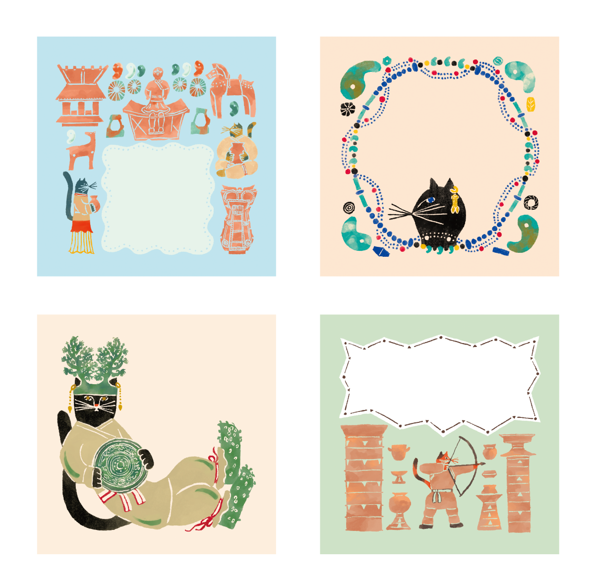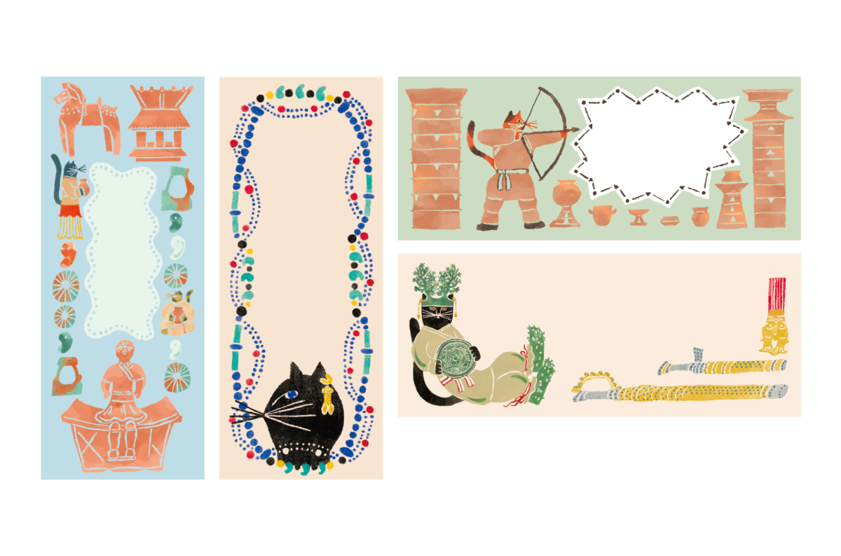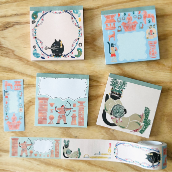 考古学アートシリーズのメモ帳とロール付箋のイラストデザインを作成しました。