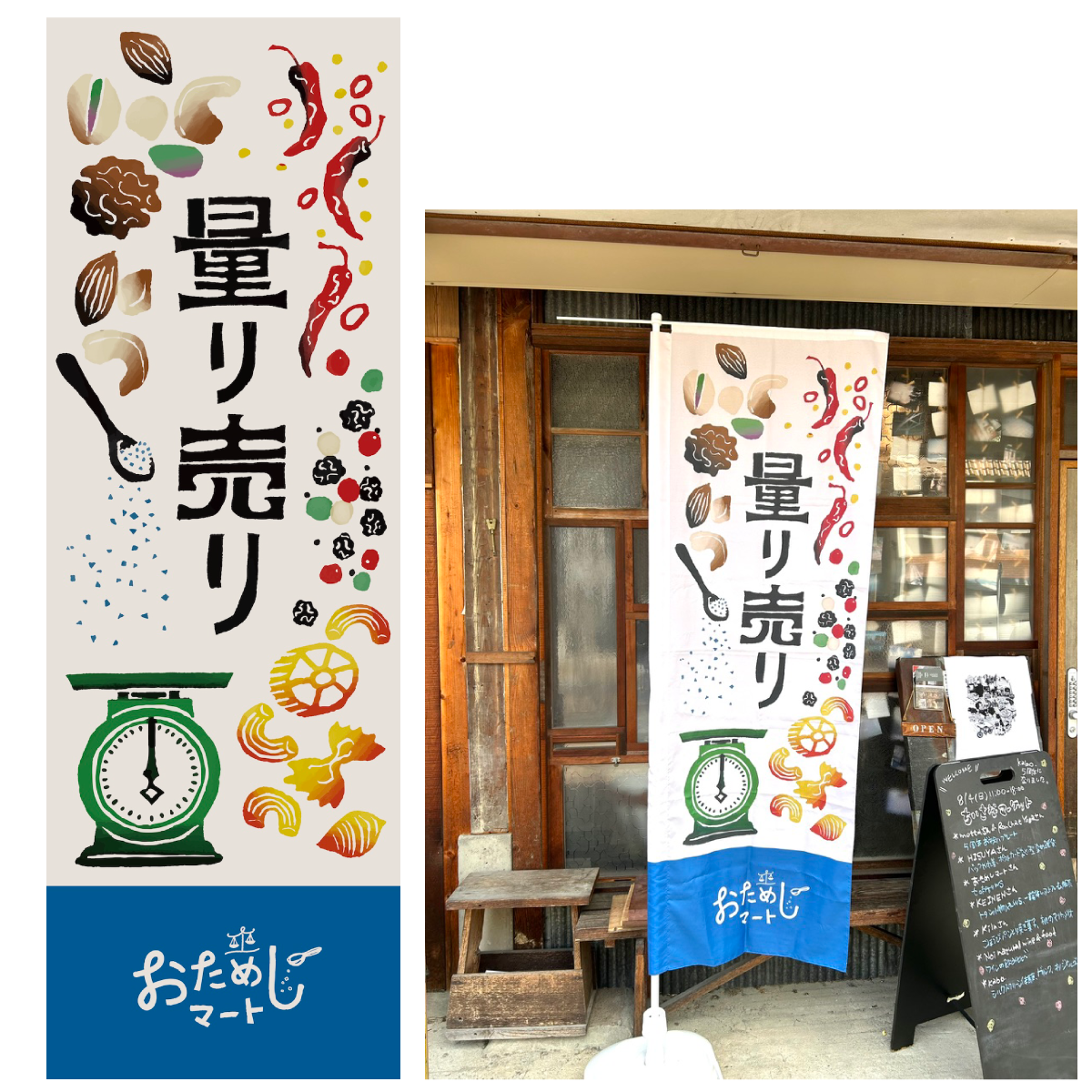 スパイスや調味料の量り売り店「おためしマート」さまののぼりデザイン・イラストを作成しました。