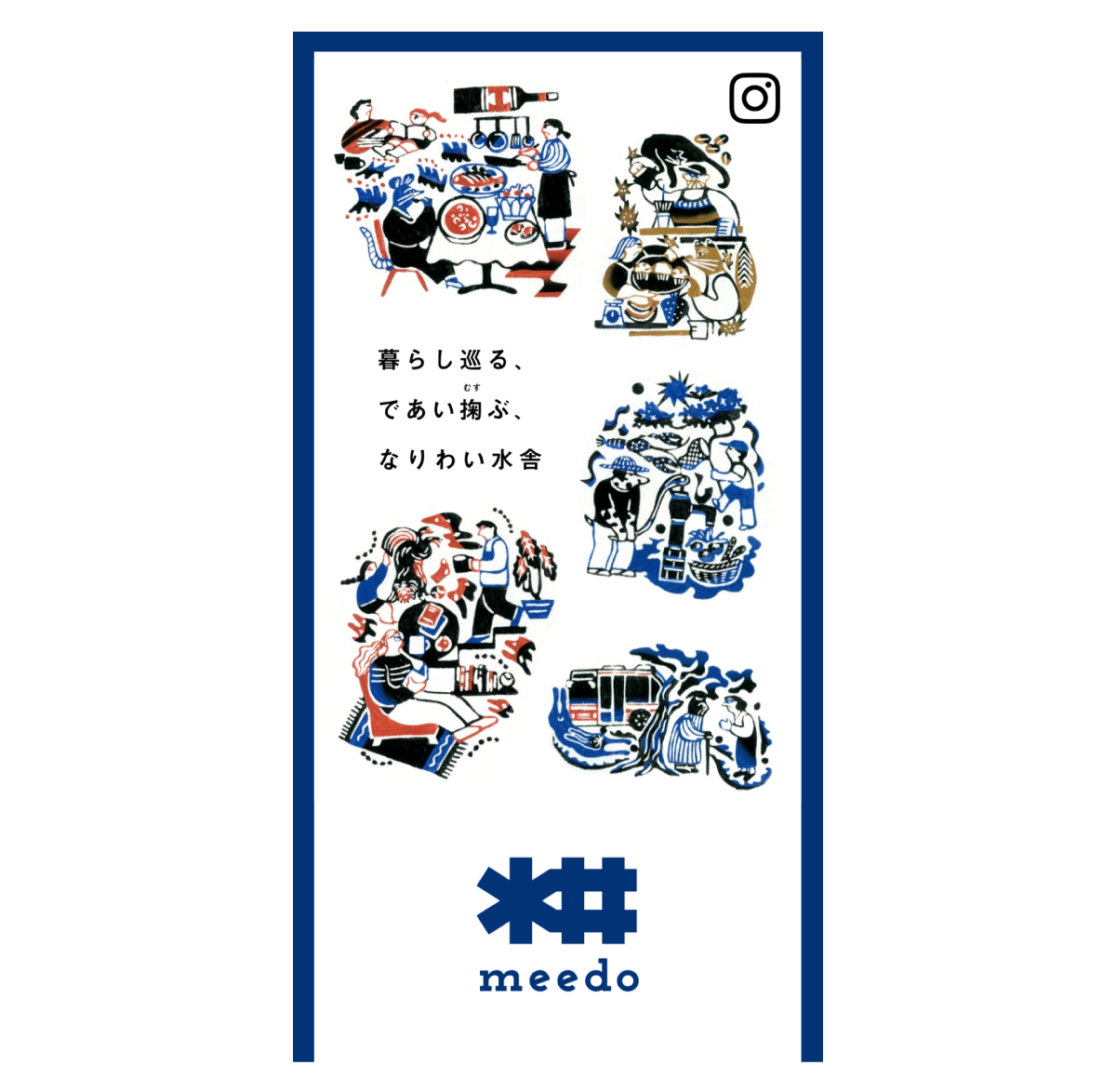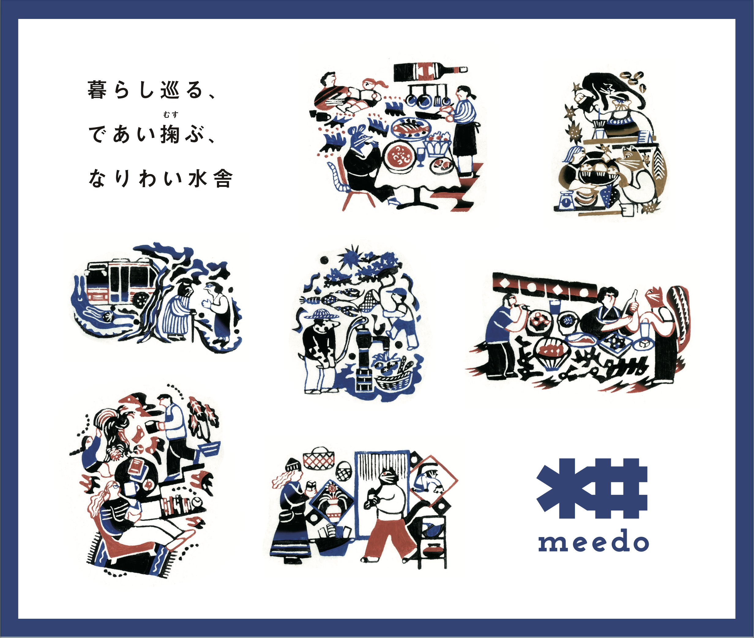 深大寺東町に2025年春オープン予定、住まいと商いが共存する“なりわい暮らし”を実現する複合施設「meedo(みいど)」のイメージイラストを作成しました。