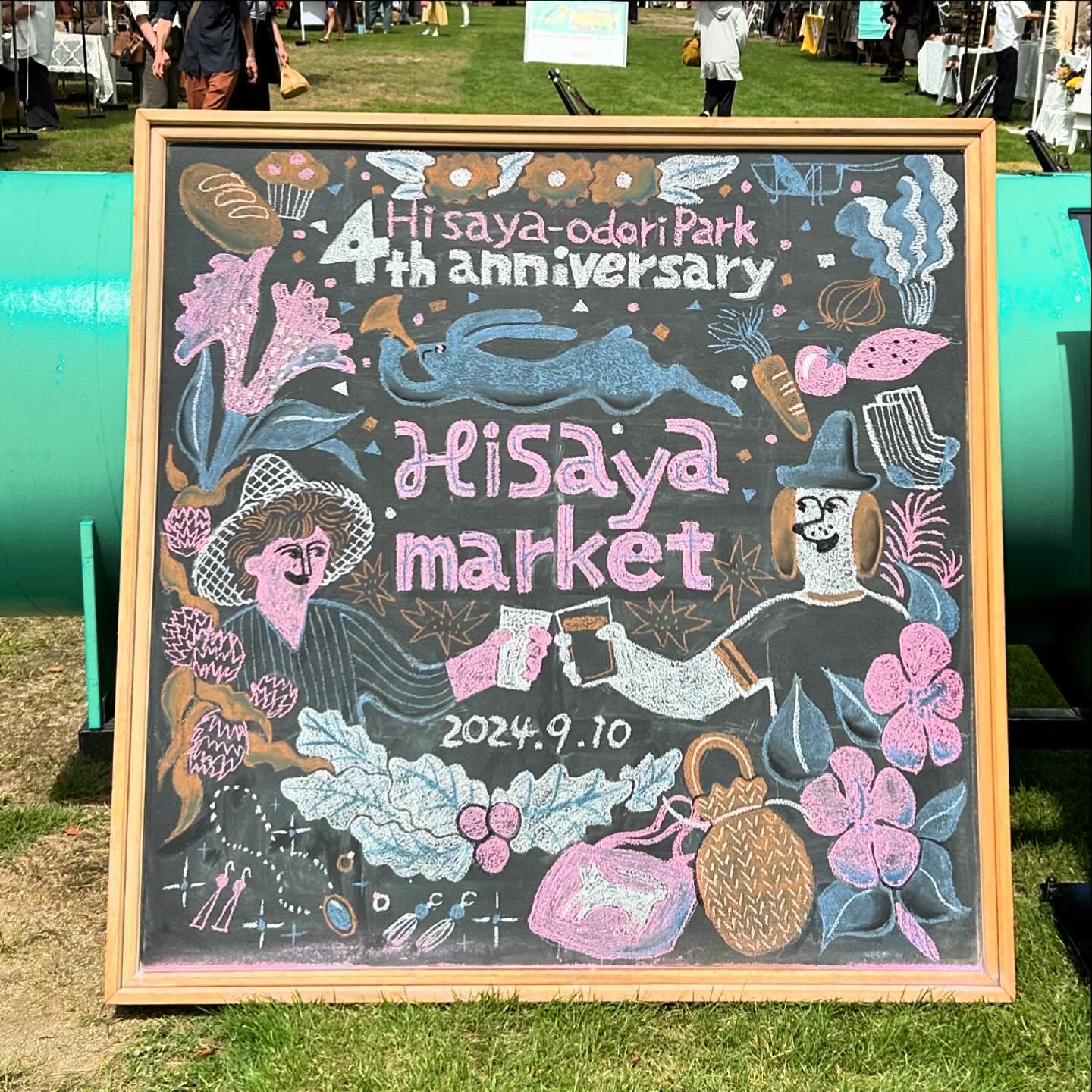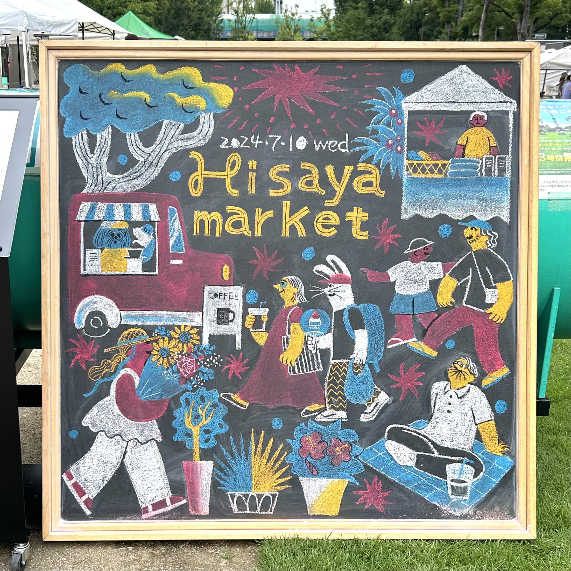 ヒサヤマーケット7月と9月のチョークアートを作成しました。