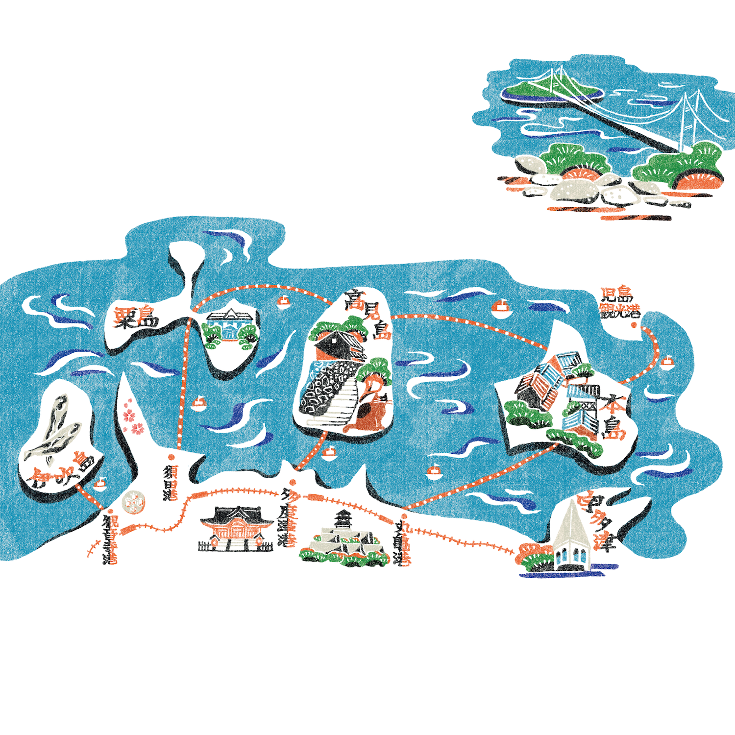 「瀬戸内国際芸術祭 2025 公式ガイドブック」イラストマップとカットを作成しました