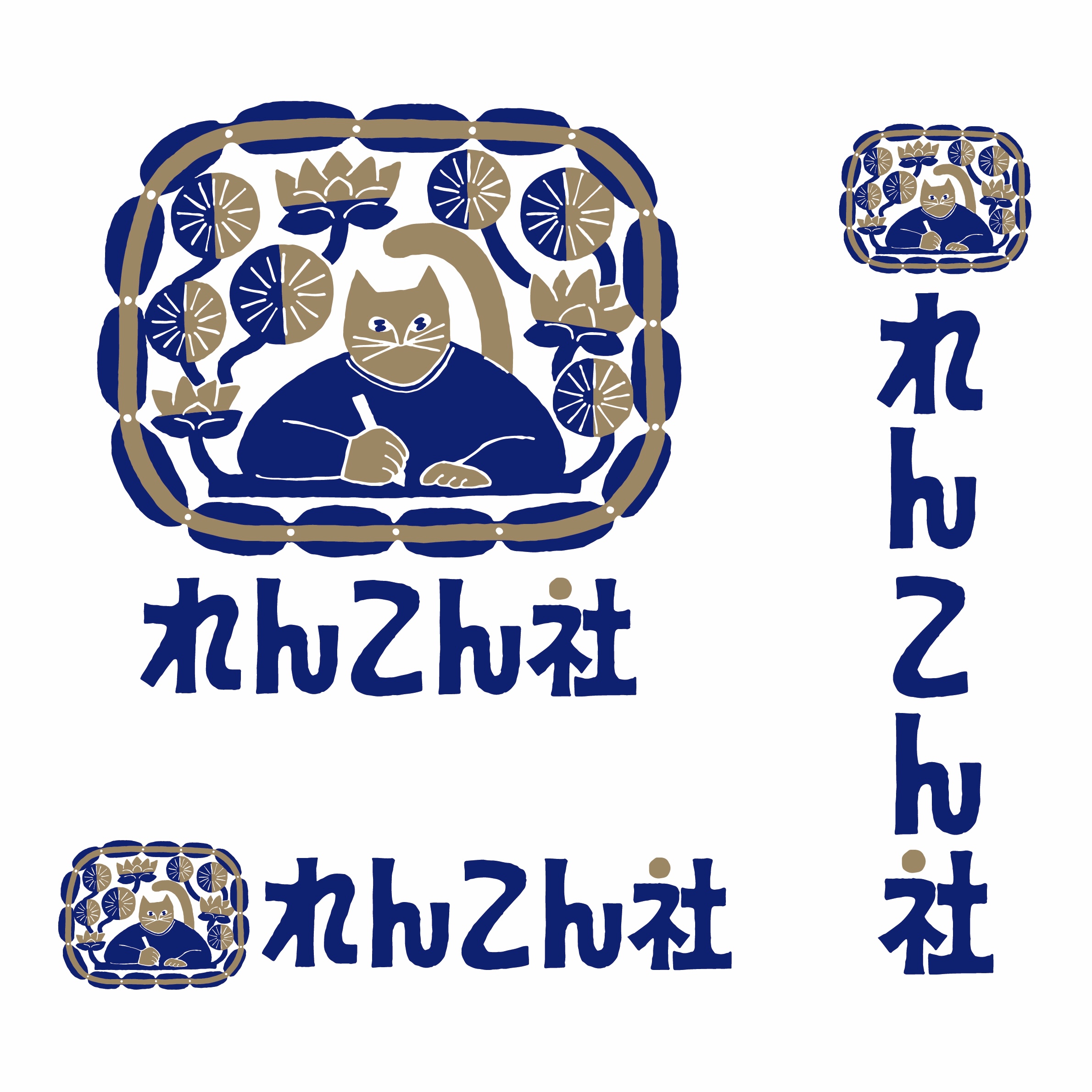 れんこんが空気を葉に送る様にたくさんの印刷物を陰ながら製造してきた歴史から「れんこん社」と名付けられた経緯と猫モチーフの文具を中心に展開予定とのことで、文具を使うネコの周りに蓮の葉や花、蓮根が連なるモチーフを入れ、熱中するお客様の周りにれんこん社が寄り添うようなイメージでデザインしました。
